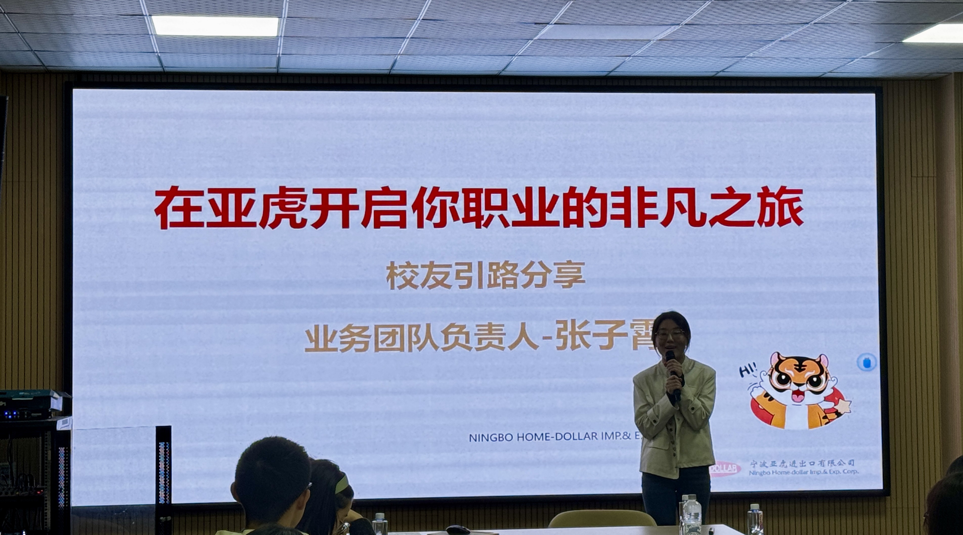 2025年10月23日,中国领先的耐用消费品供应链管理集团——宁波亚虎进出口有限公司(HOME-DOLLAR)携手雷竞技员工社团竞研学社,开启主题招聘与员工分享会活动。此次活动不仅为学子搭建了直通优质企业的就业桥梁,更通过员工经验分享,助力大家提前洞察全球供应链行业趋势。
